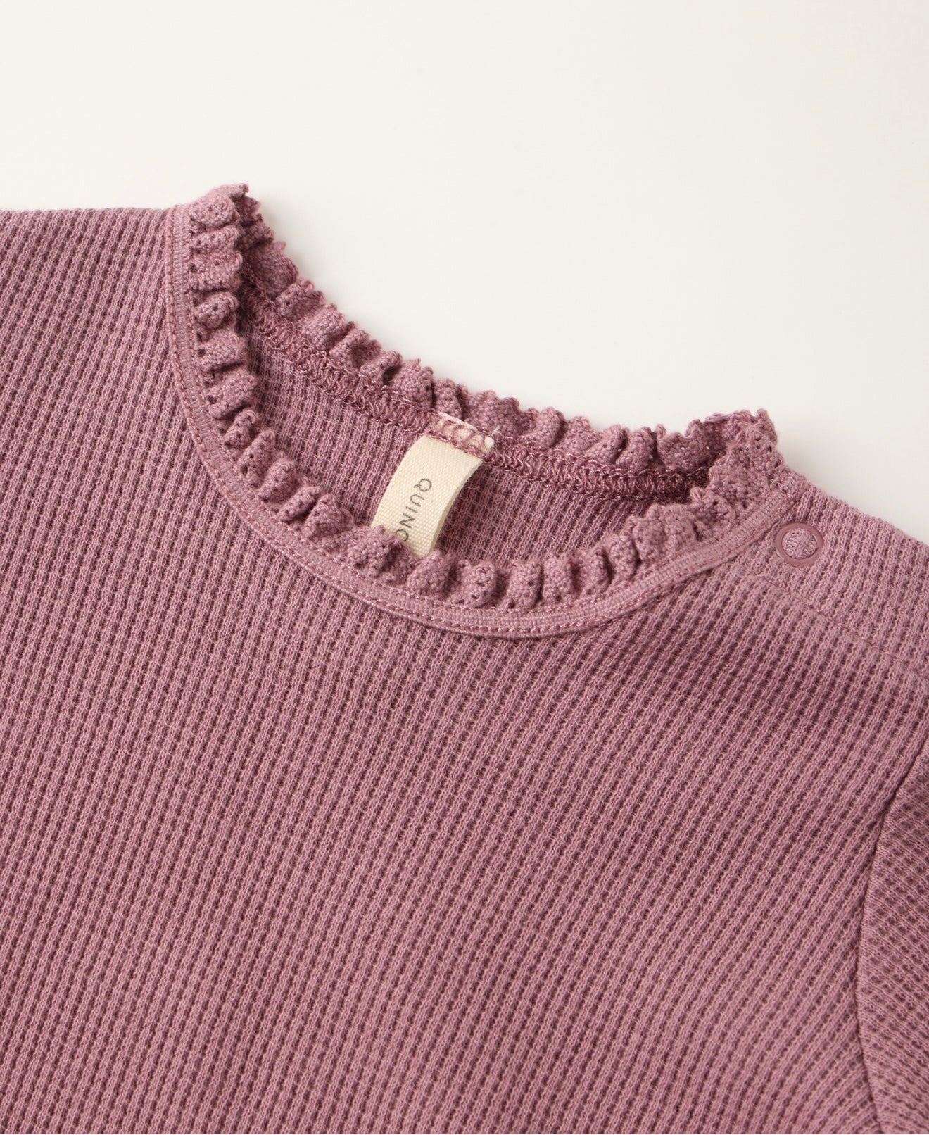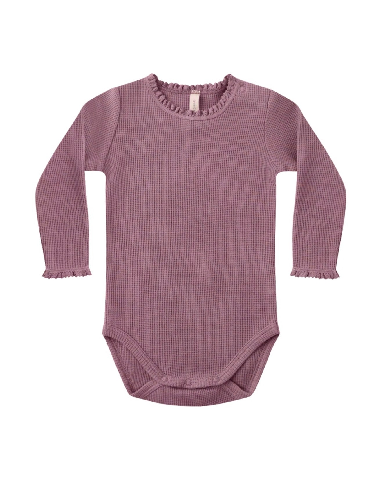 Introducing the "Mulberry" bodysuit: a sweet treat for your little one! Made of soft waffle fabric, this long sleeve bodysuit will keep your baby girl cozy all day. And the mulberry color adds a pop of fun to their wardrobe. Perfect for playtime (or naptime, let's be real)!
