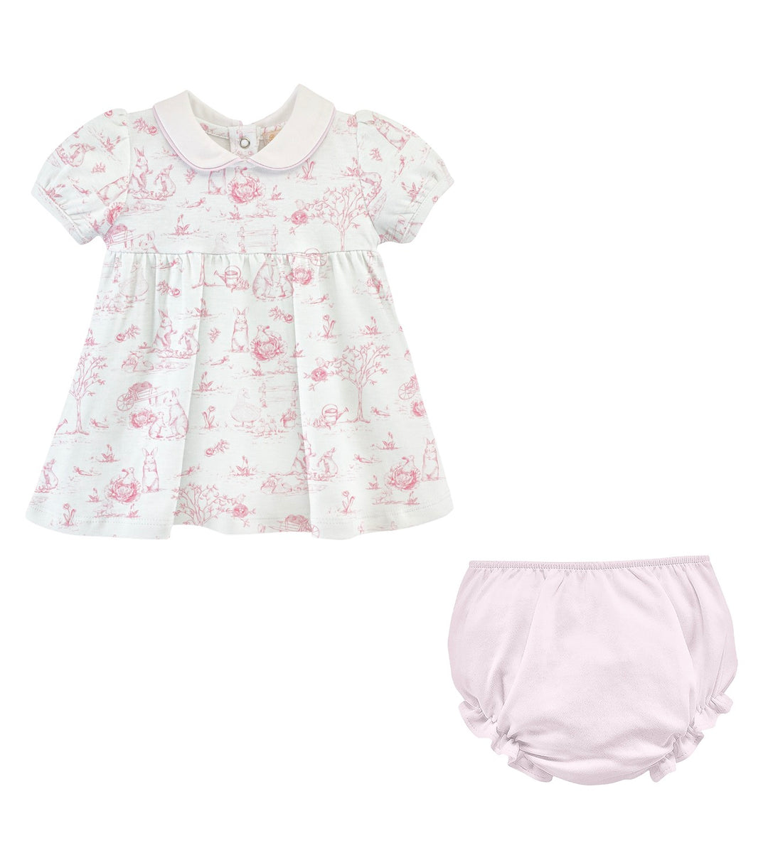 Pink Toile Bunnies Dress w/ White Collar & Bloomer