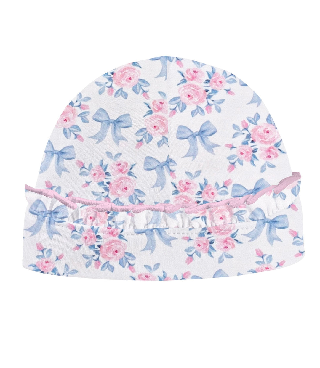 Baby Girls Tiny Soft Floral Printed Hat w/ Ruffle