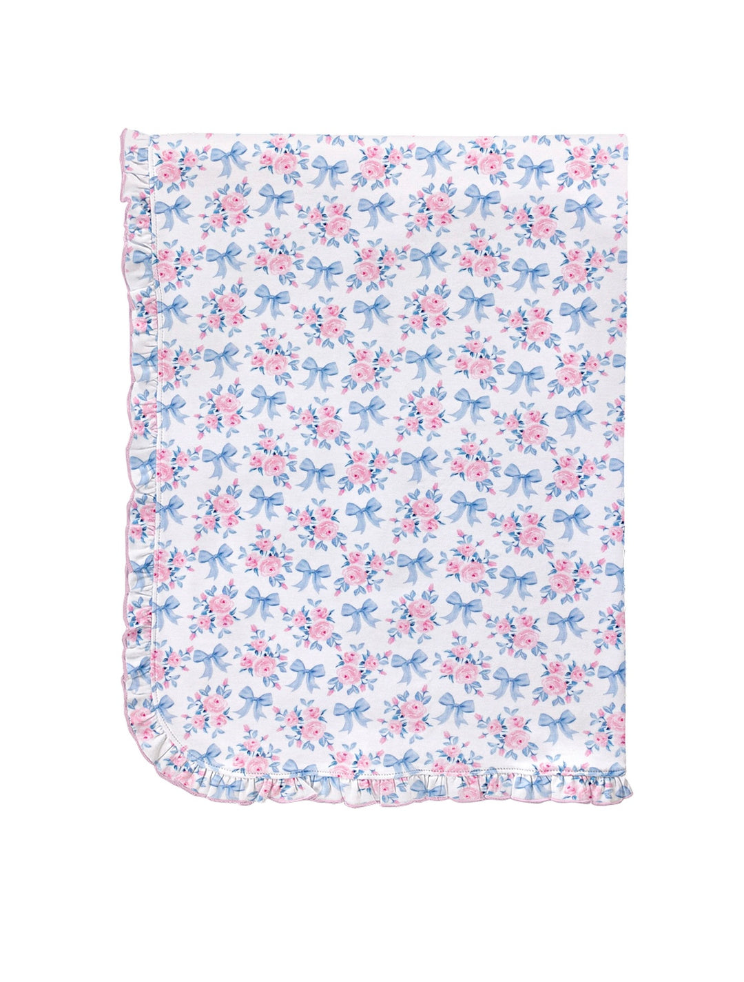 Blue Floral Bows Printed Blanket w/ Ruffle 30X28.5 IN.