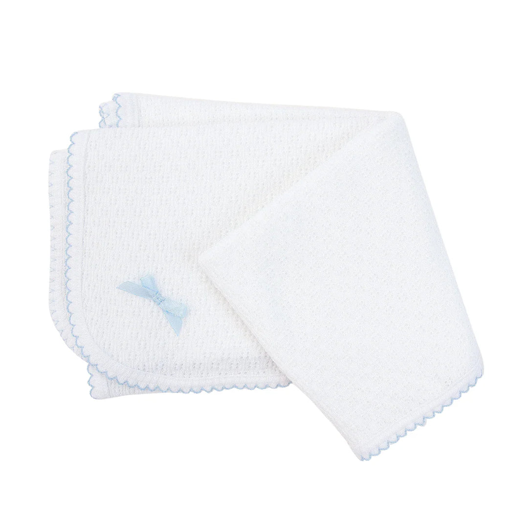 Knit Swaddle Blanket | Blue Trim w/ Bow