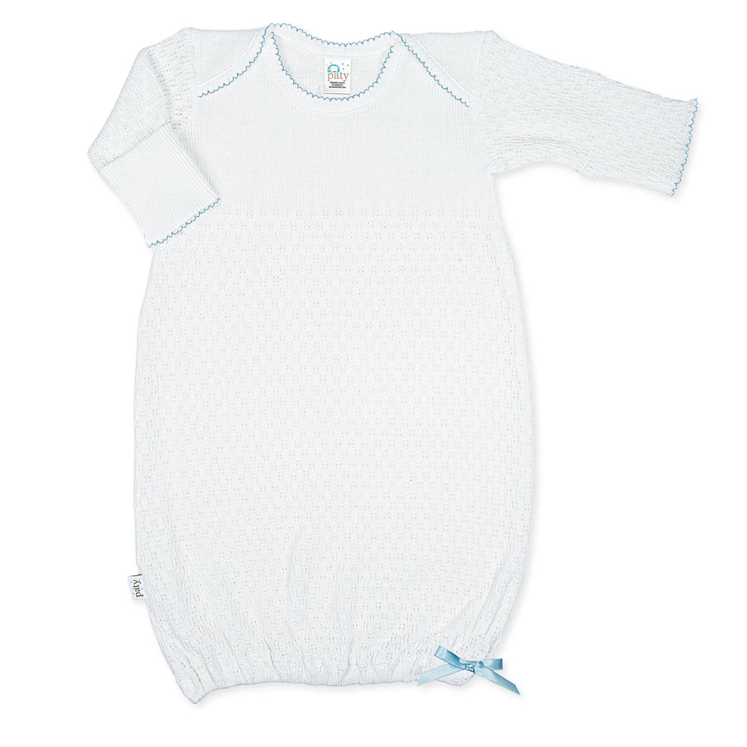 Knit Baby Gown | Blue Trim