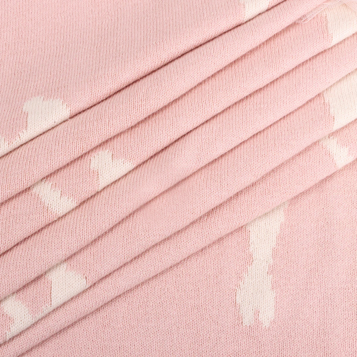 Luxurious 100% Organic Cotton Jacquard Knitted Reversible Baby Blanket with blush pink tutu 3D elements.