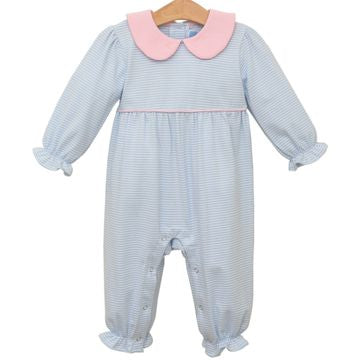 Katherine Girls Romper - Light Blue Stripe/Light Pink