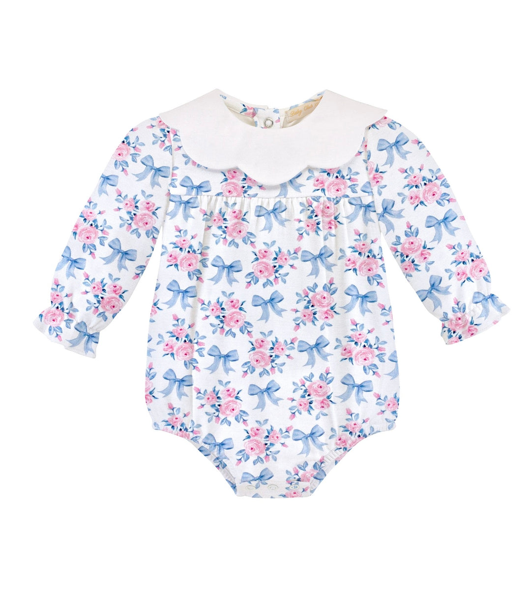 Blue Floral Bows Bubble w/ Scalloped Collar