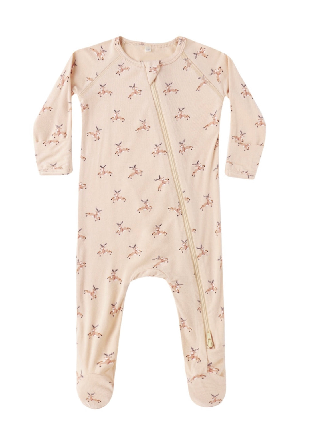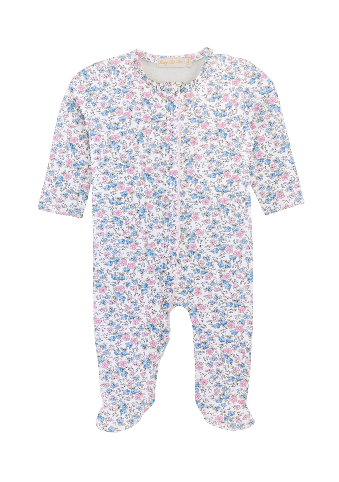 Tiny Soft Floral Printed Zipper Footie w/ Ruffles