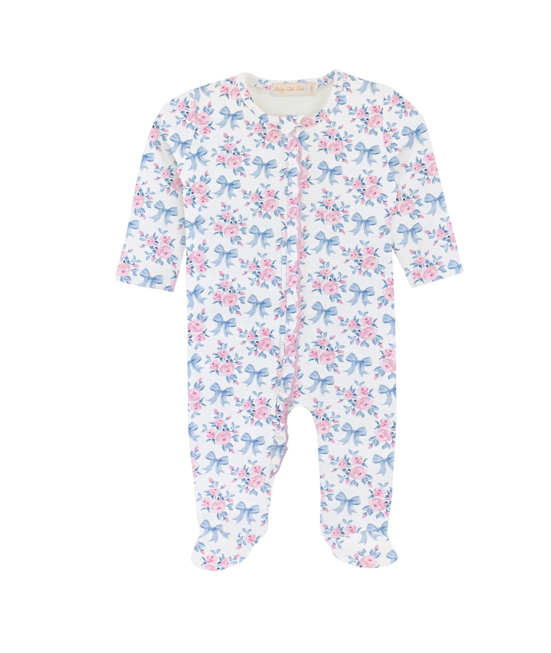Blue Floral Bows Printed Zipper Footie w/ Ruffles