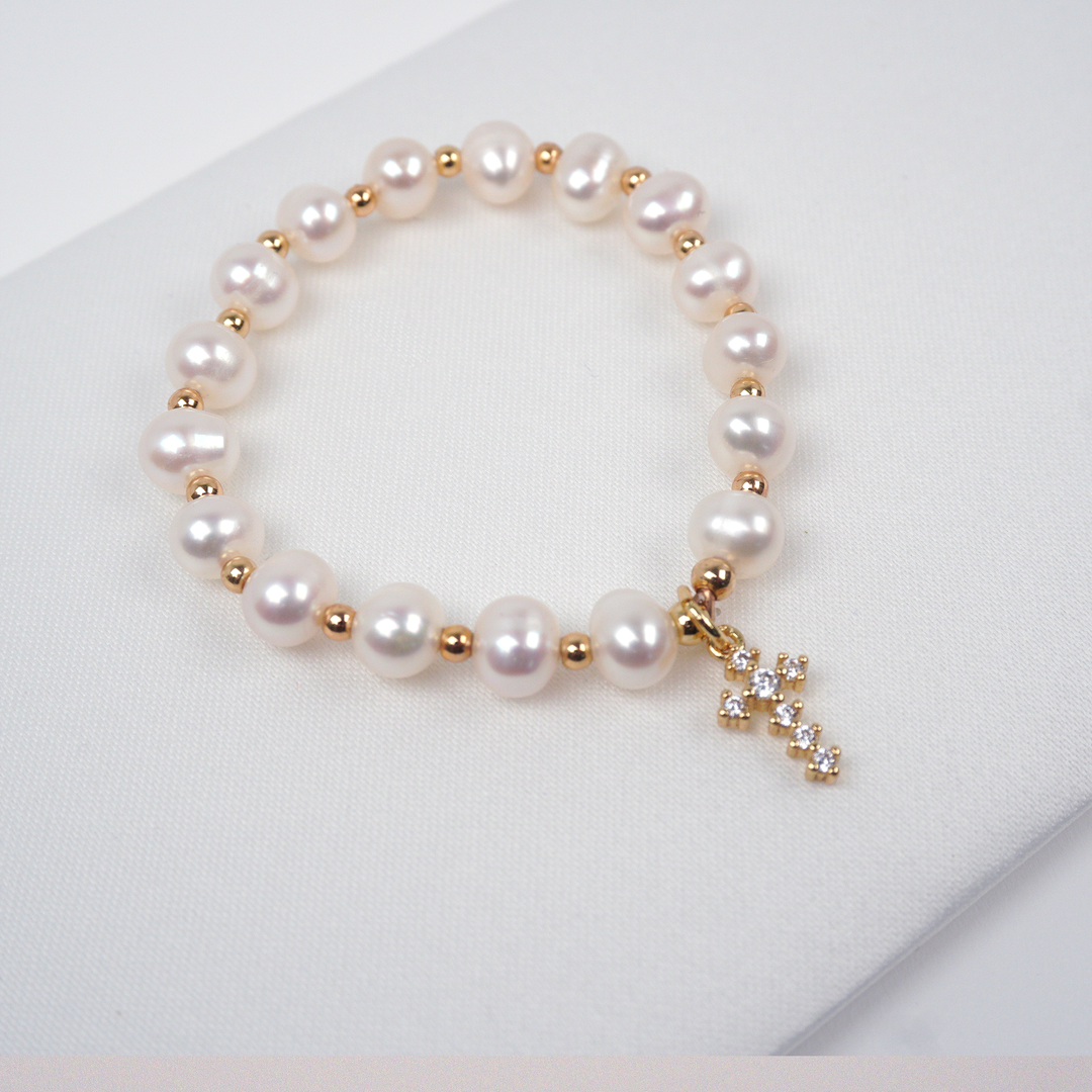 MARCELA - Fancy Jeweled Cross Water Pearl Bracelet
