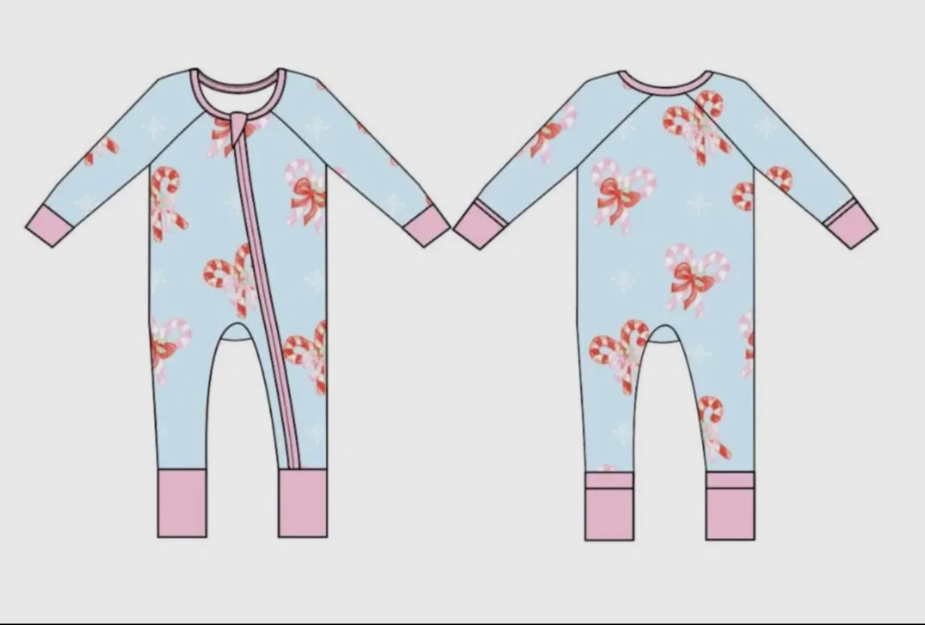 Candy Cane Bows Zipper Onesie