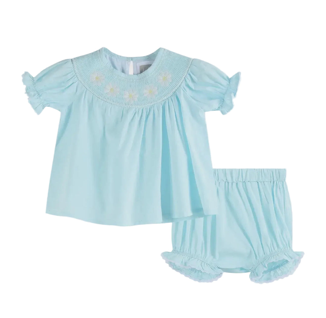Light Blue Daisy Smocked Dress and Bloomer Set
