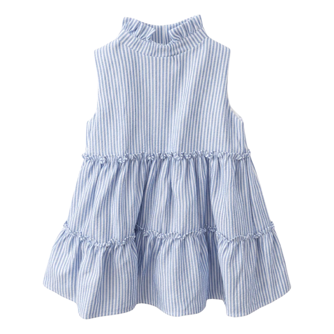 Blue Stripe Tieback Tiered Dress
