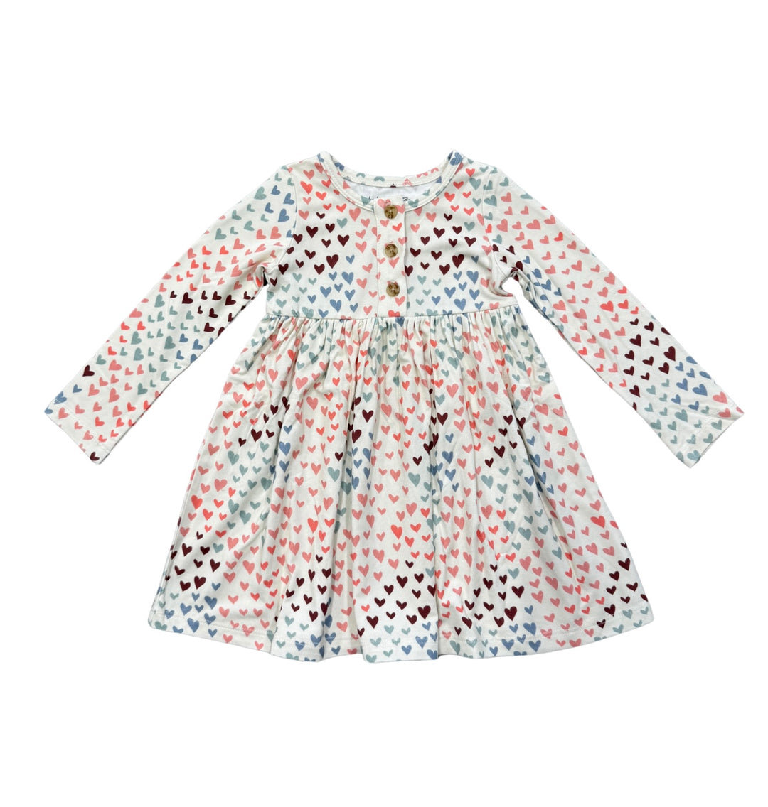 Girls Long Sleeve Rainbow Hearts Henley Dress (Bamboo)