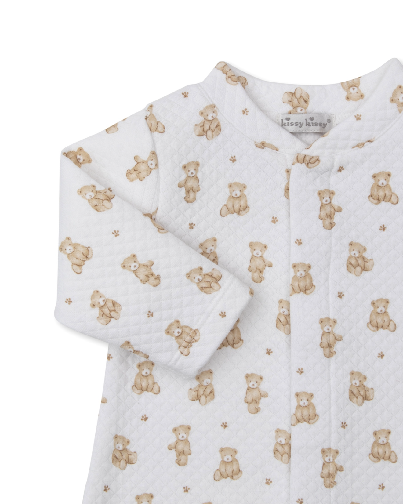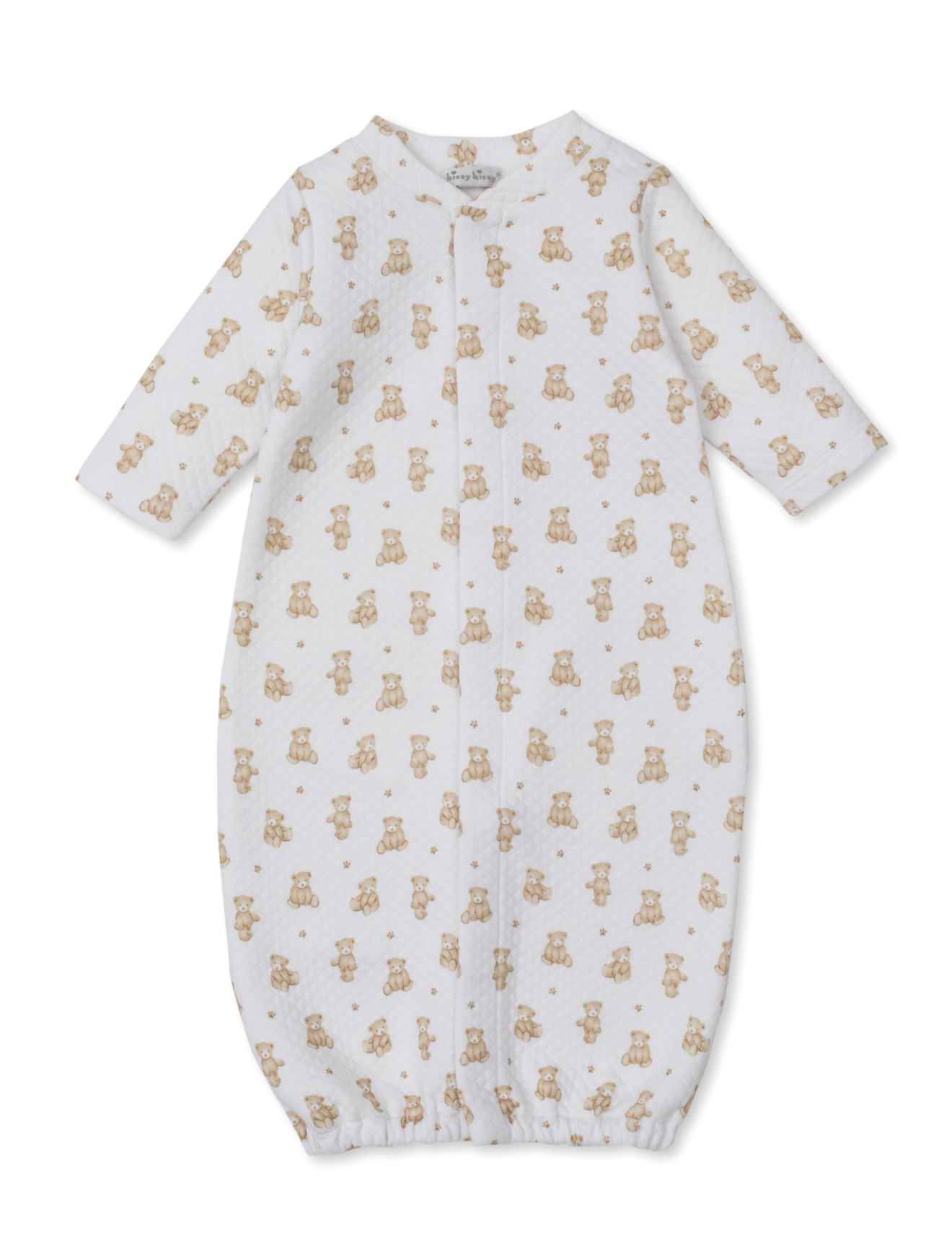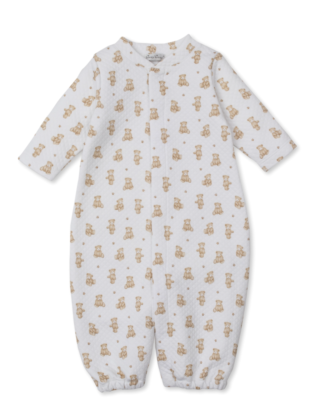 Expertly designed for ultimate comfort and versatility, the Teddy Bear Time Brown Jacquard Convertible Gown is the perfect addition to your baby's wardrobe. With a soft and cozy jacquard fabric and adjustable convertible design, this gown offers incredible value and convenience for parents. Keep your little one snug and stylish with this must-have essential.