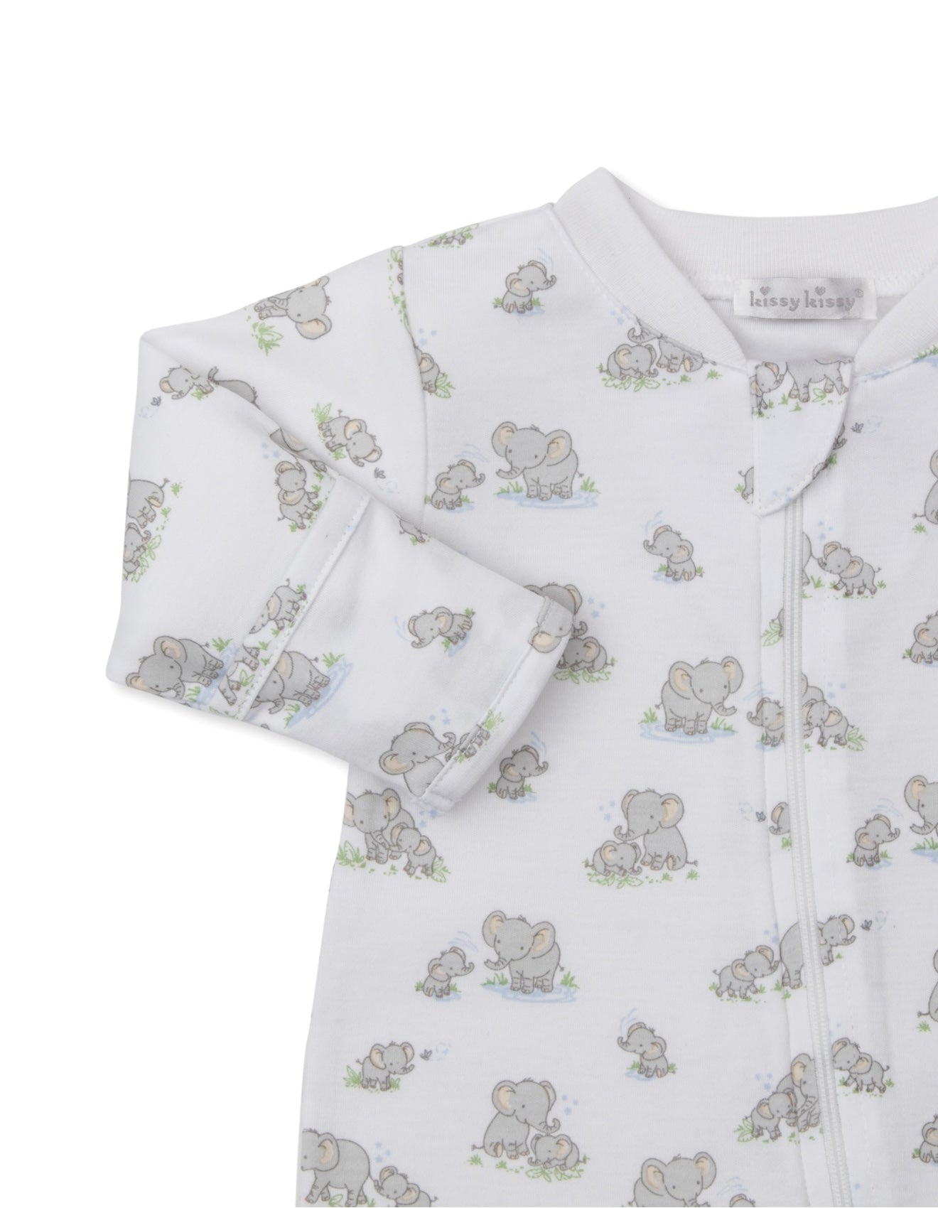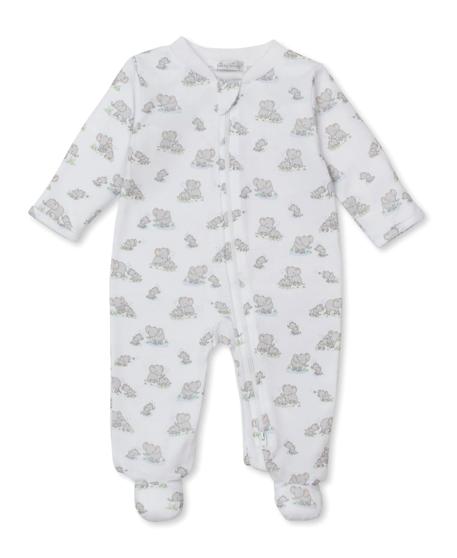 Playfully patterned with our elephant esprit print, our cozy, zippered footie for your precious baby is made from the softest Pima cotton for ultimate comfort.