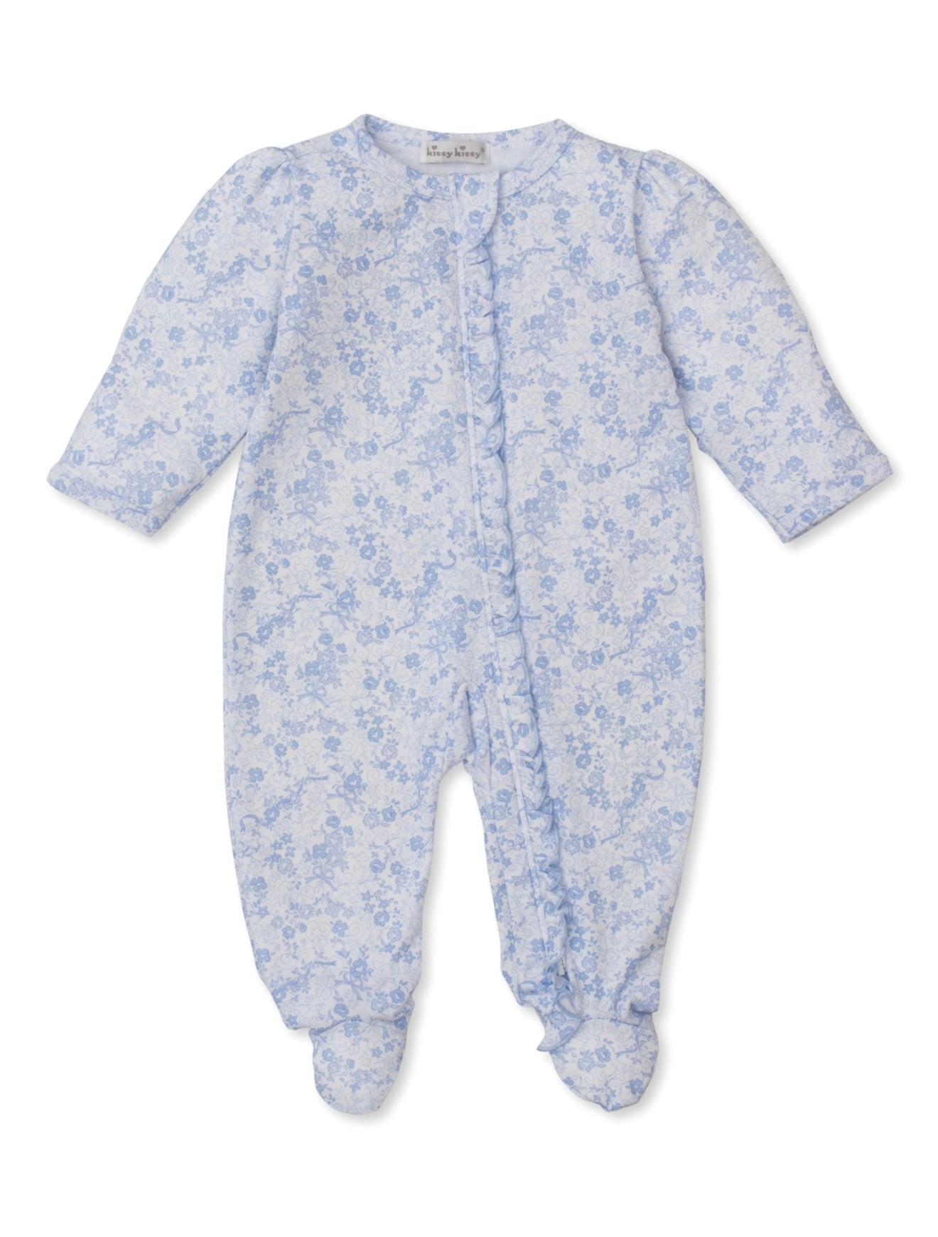 Playfully patterned, our cozy, blue old english roses print zippered footie for your baby is made from the softest Pima cotton for ultimate comfort.