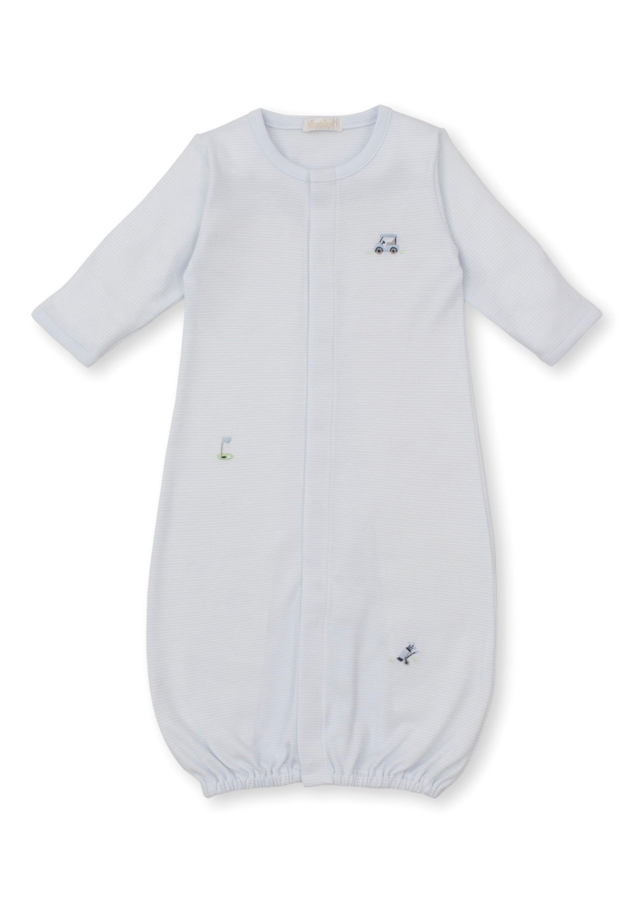 Introducing the Premier Fairway Foursome Baby Converter Gown. Made from soft Pima cotton with delicate embroidered details, this gown is perfect for your little one. Transform it into a gown or a romper for added versatility. Give your baby the comfort and style they deserve.
