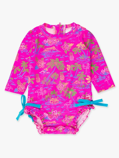 Neon Island Time Long Sleeve Zipper Rash Guard Two Piece