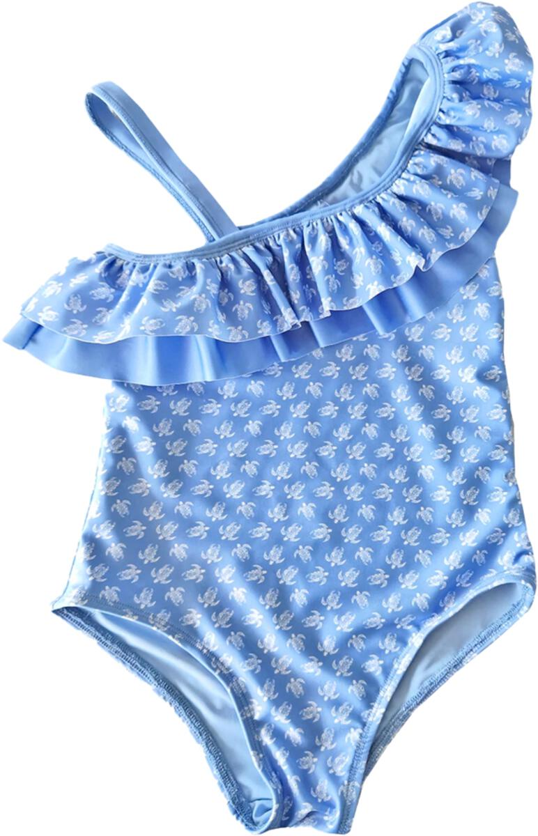 Girls One-Piece Rash Guard Swimsuit | Aqua Grey Floral