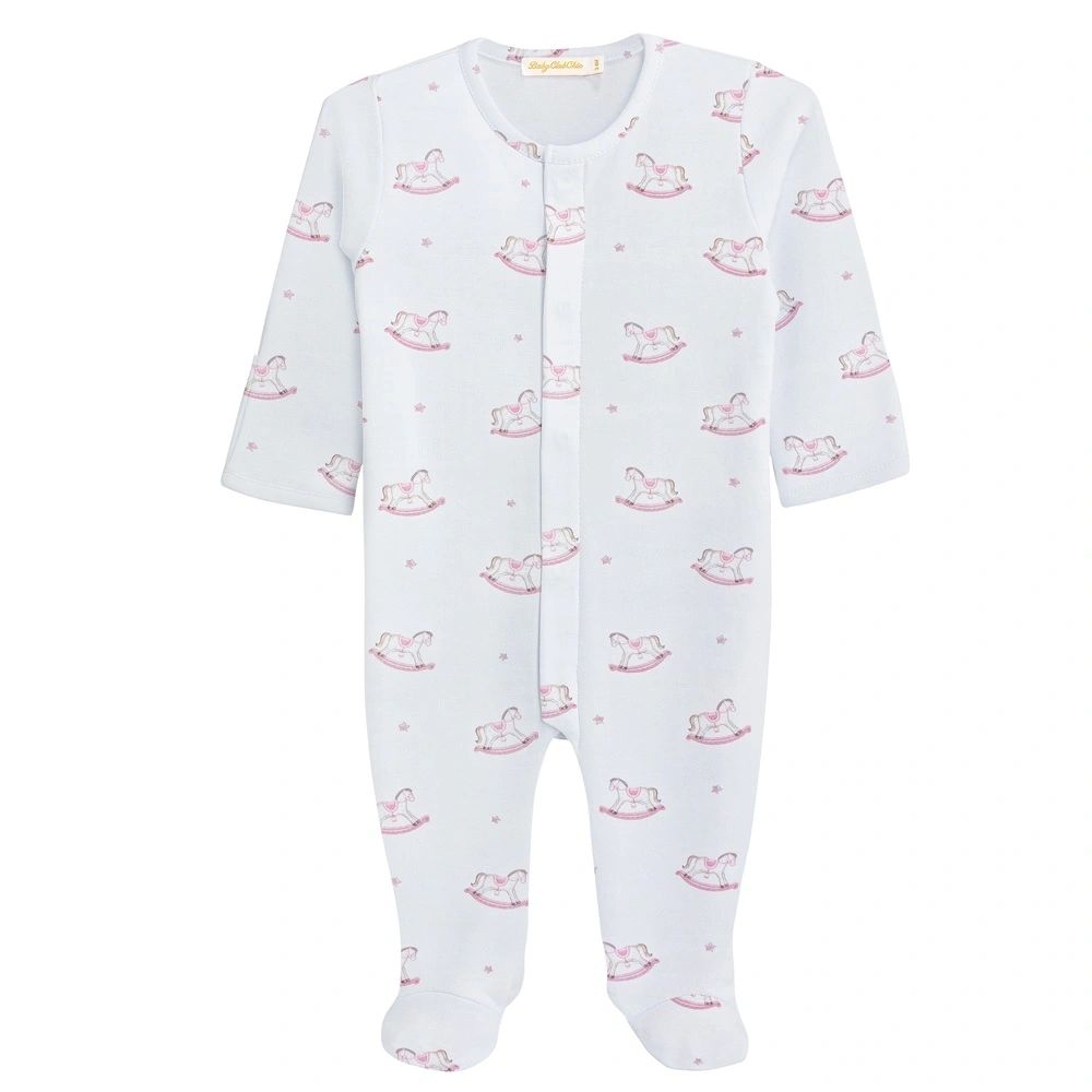 Cute Rocking Horse Girls Button Footie Pima Cotton - Pink