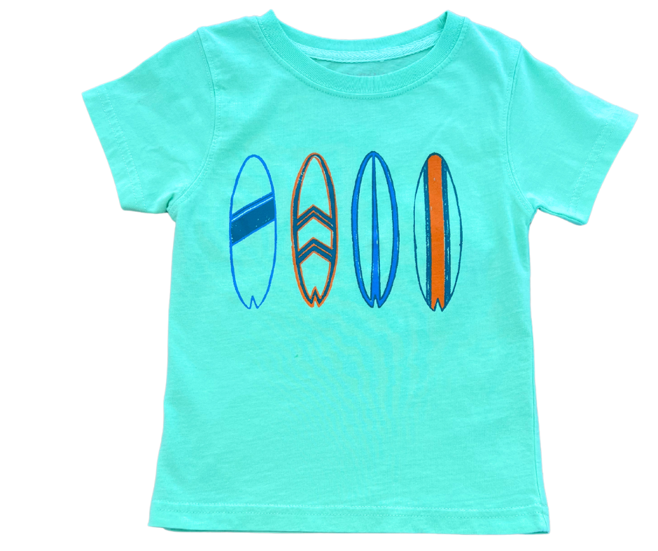 Ride the waves in style with our Island Green Surf Boards T-Shirt! This unisex, short sleeve tee features a fun graphic design that will make you stand out on and off the beach. Perfect for any surf enthusiast.