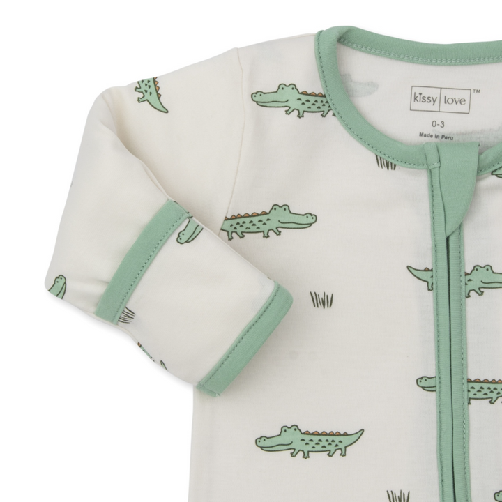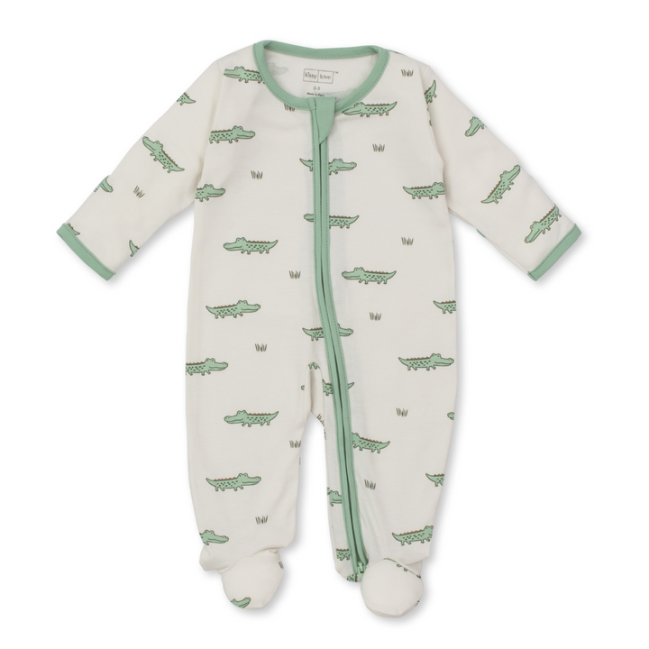 With our fun crocodile walk print, our footie is designed to keep baby cute, comfortable, and cozy. Made from the softest Pima cotton for ultimate comfort.