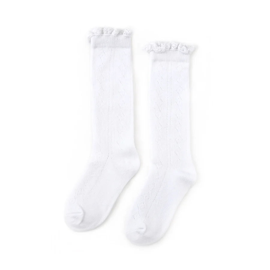 Little Stocking Co. White Fancy Lace Top Knee High Socks