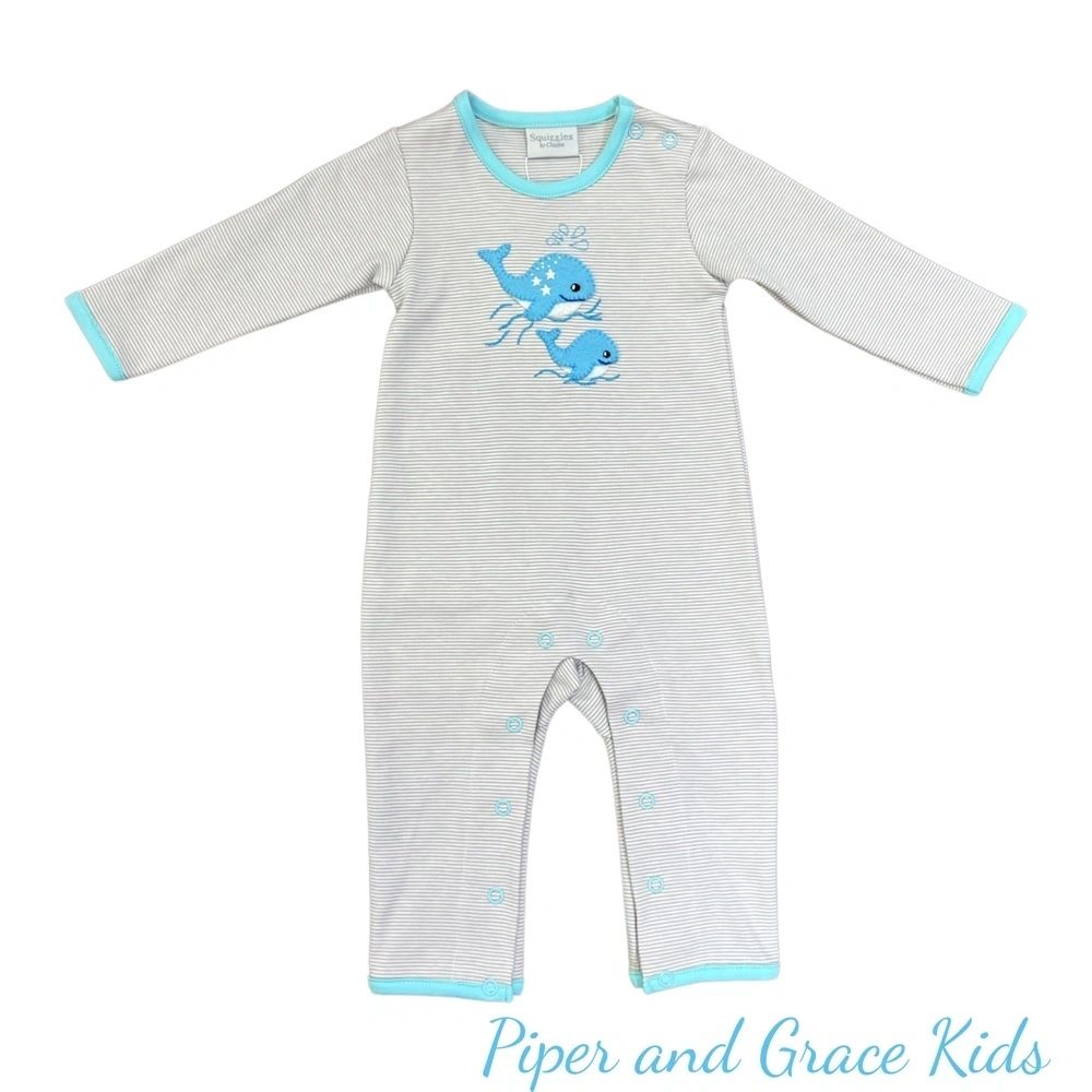 Squiggles Blue Whales Boys Infant Romper - Pima Cotton: 12M