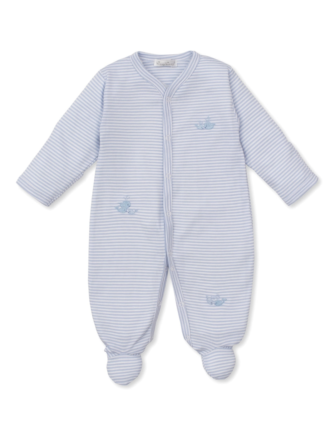 "Suit up your little sailor in the charming Whale Wonder Boys Light Blue Footie! This playful one-piece features a whimsical whale design and is perfect for your little bundle of joy. Keep your baby boy cozy and stylish in this must-have footie. (Set sail in style!)"