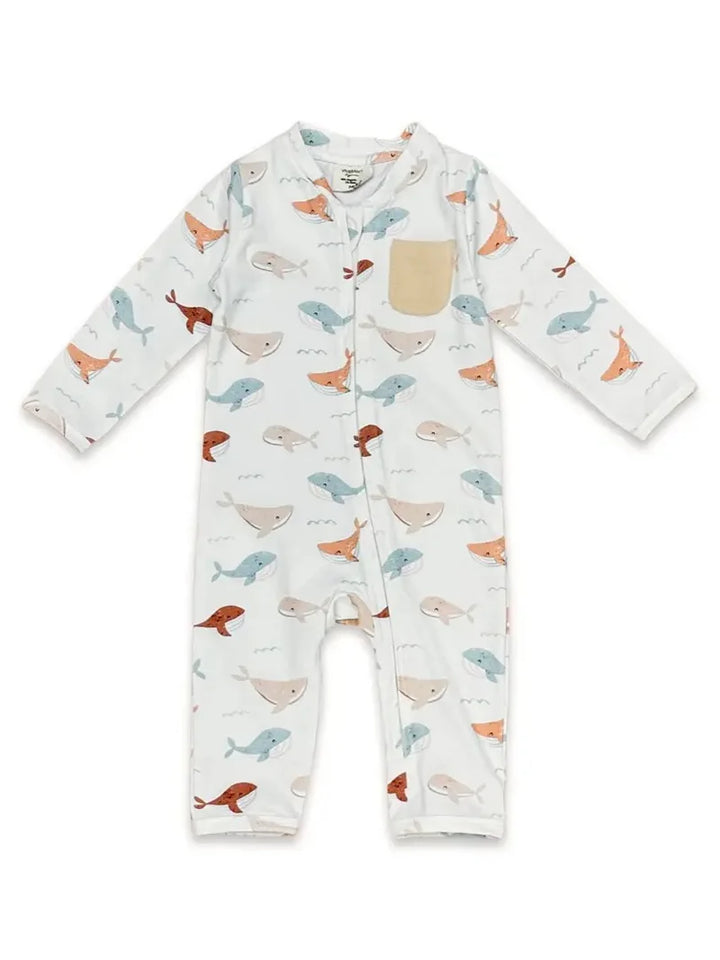 Whales Zipper Baby Jumpsuit (Organic Jersey): 0-3M, 12-18M